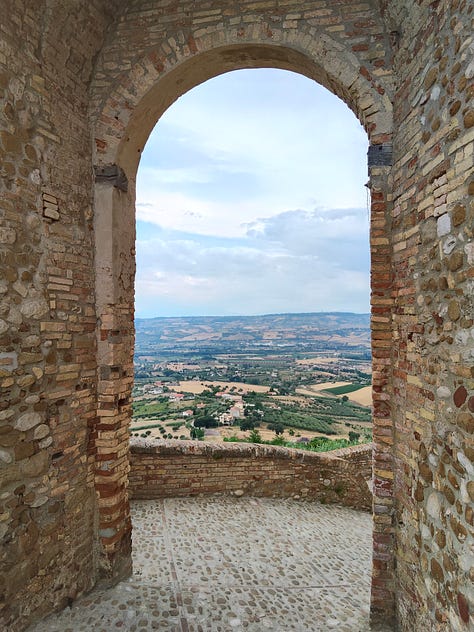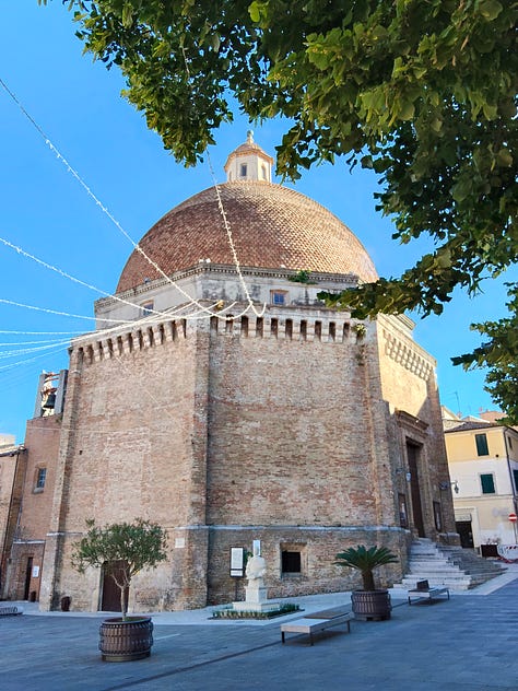Infine, la gita con cui ci siamo spinti di più verso l’entroterra. Un pomeriggio abbiamo visitato Campli, un borgo celebre per la presenza di una Scala Santa non dissimile da quella di Roma. Il paese purtroppo ha ancora segni evidenti del passaggio del terremoto, quindi passeggiarvi ci ha fatto un effetto strano - peraltro, anche qui eravamo gli unici turisti. Peccato che per pochi giorni abbiamo mancato la Festa delle Fregnacce.